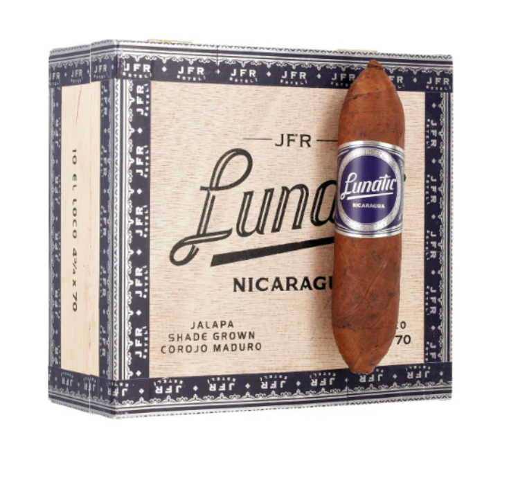 This is a potent and flavorful cigar with a chocolatey, creamy, and earthy profile. It is a Nicaraguan puro that features a bold, shade-grown Corojo maduro wrapper. Handmade in Nicaragua, the JFR Lunatic Loco is considered AGANORSA Leaf’s strongest cigar to date, so be sure to enjoy it after a hearty dinner.